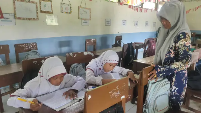 Liputan6.com, Banyuasin - Sinar matahari masuk melewati celah ventilasi ruang kelas sebagai penerangan alami kelas. Walau masih pukul 10.00 WIB, udara di dalam ruangan kelas cukup panas, hanya mengandalkan udara alam yang menyapu sedikit keringat dari sudut kening murid-murid.